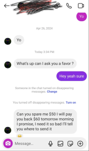 A common scam that happens frequently in todays day and age is when scammers take over your friends instagram account and shoots various people DM's asking for help and money.